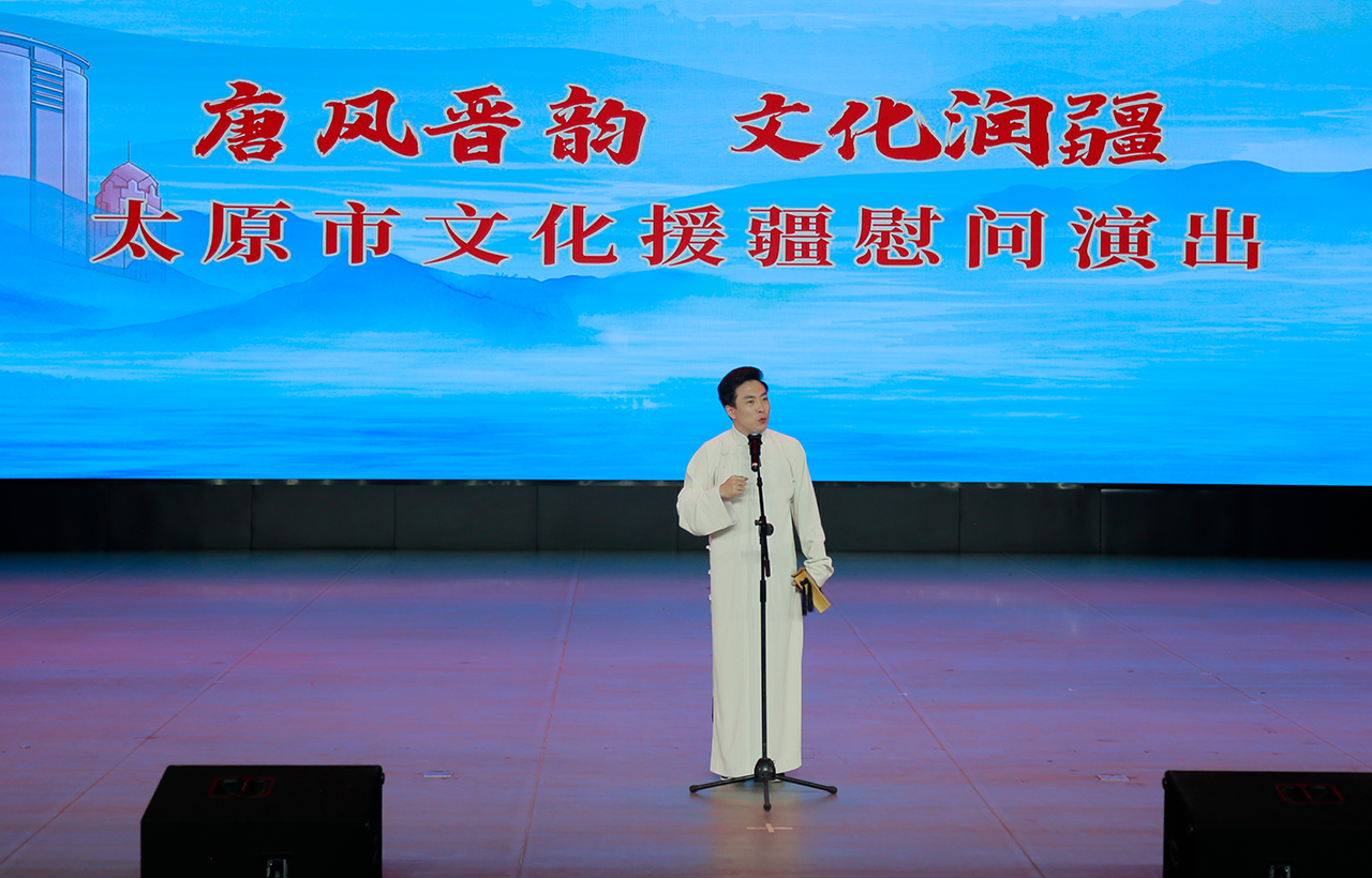 8月29日晚,“唐风晋韵 文化润疆”太原市文化援疆慰问演出在昌吉学院图书馆一楼多功能厅举行。昌吉州党委副书记、山西省对口援疆工作前方指挥部总指挥刘鹓,昌吉州副州长、山西省对口援疆工作前方指挥部副总指挥朱红涛,太原市委常委、宣传部部长程永平,太原市委宣传部副部长韩莹,昌吉学院党委书记罗旭,在家校领导出席活动。
