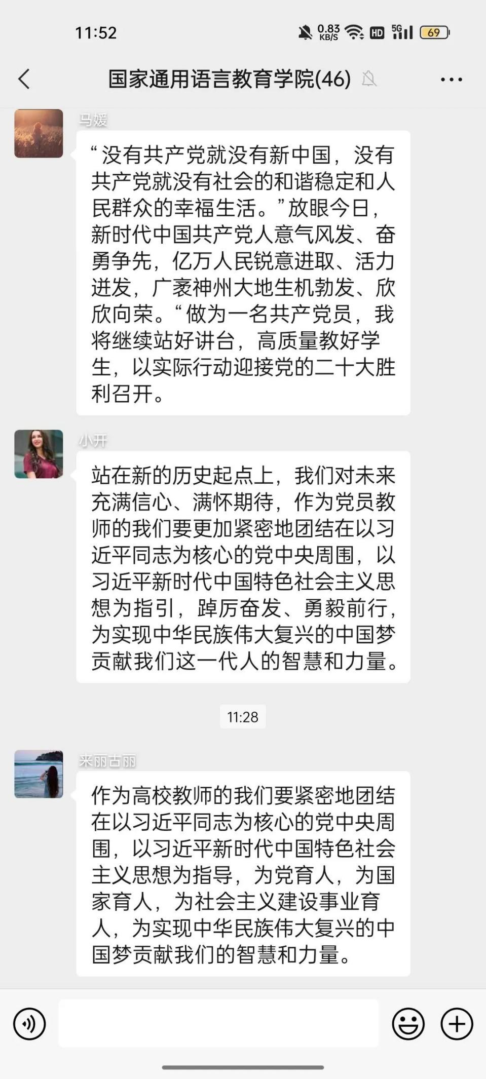 国家通用语言教育学院全体教职工通过收看党的二十大开幕会直播,进一步提高了认识、增添了干劲。我们要在全面深入实施科教兴国战略、人才强国战略、创新驱动发展战略的指引下,积极贯彻党的教育方针,落实立德树人根本任务,立足教育事业,为党育人,为国育才,以昂首姿态奋力开启教育事业的新征程。