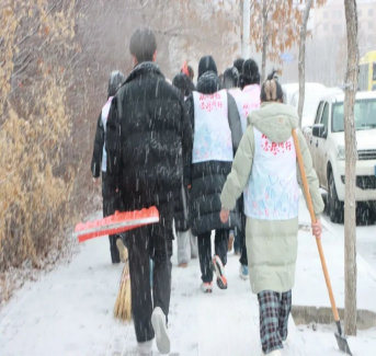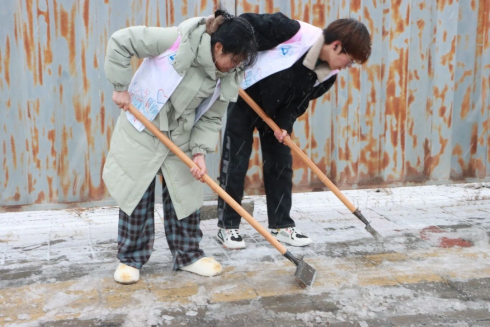 活动中,志愿者们手持铁锹、扫帚等工具,分工协作、默契配合,不畏严寒、干劲十足。大家弯腰铲雪、俯身扫冰,重点清理社区主干道、单元门口、老年活动区域等关键路段的积雪,不放过任何一处结冰隐患。凛冽寒风中,志愿者们的身影忙碌而坚定,汗水浸湿衣衫仍热情不减,用实际行动驱散严寒、传递温暖。