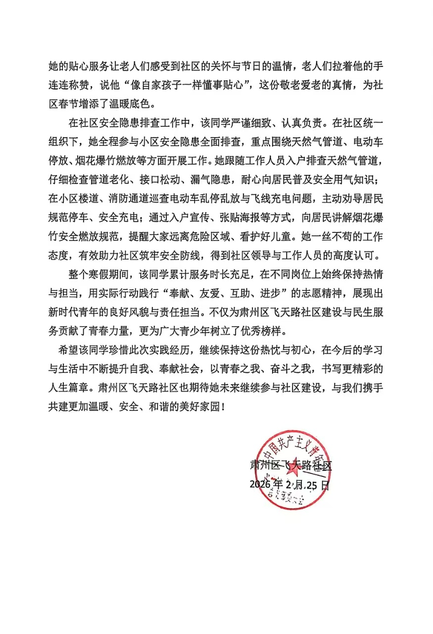 短短十天,我真切感受到社区工作虽琐碎却连着民心。档案里的每个名字、清扫的每条路、陪伴的每个孩子,都让我明白社区工作是跑出来、敲出来、用心做出来的。这次实践充实又有意义,未来我还会继续参与。