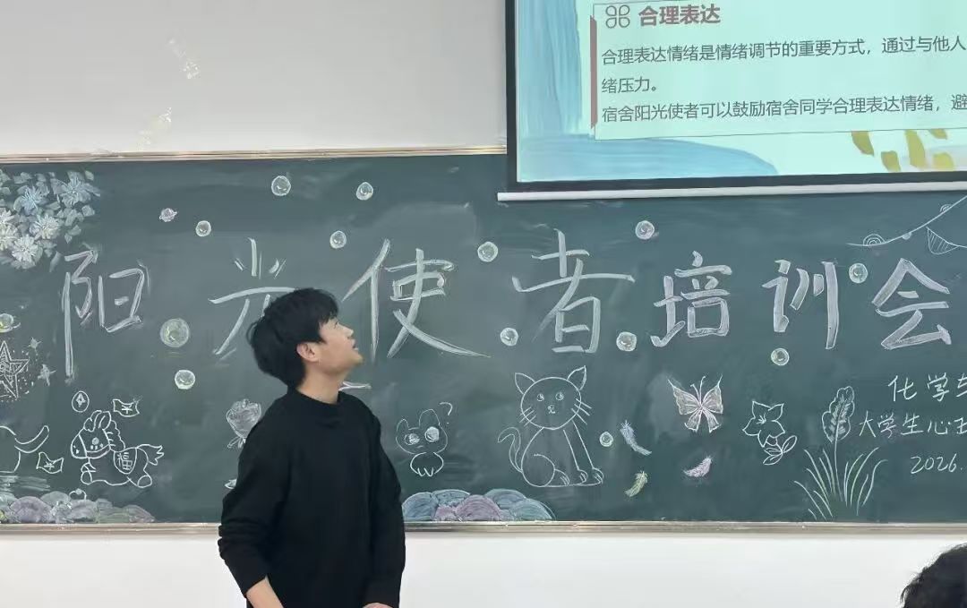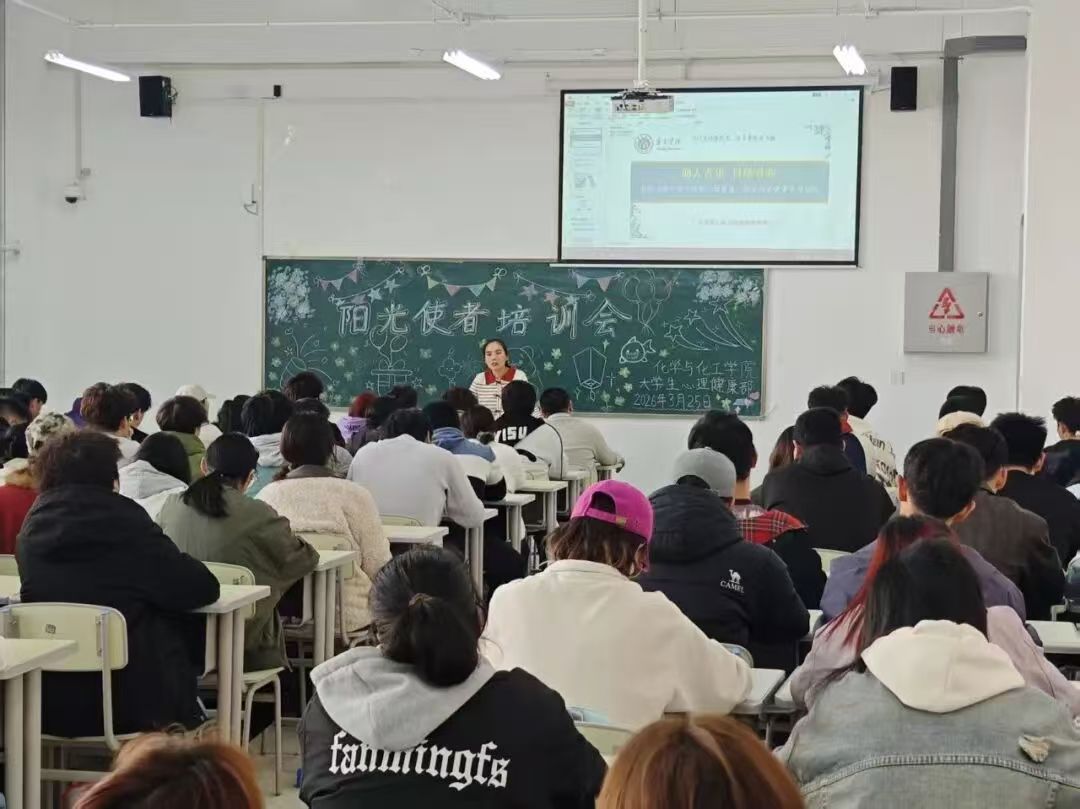 为进一步加强宿舍文化建设,提升宿舍长综合协调能力,营造和谐友爱的宿舍氛围,昌吉学院化学与化工学院大学生心理健康中心于2026年3月25日16:00在昌吉学院新城校区七号楼7313、7316教室组织开展宿舍阳光使者培训会。