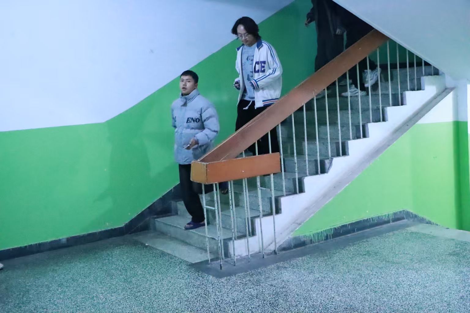 昌吉学院化学与化工学院于2025年11月12日18:00在昌吉学院新城校区一号学生宿舍楼进行消防演练。随着警报声响起,全体学生捂住口鼻、弯腰靠墙、动作迅速,快速有序地撤离到空旷安全的地方,在安全地方集合后,各宿舍长清点人数,确保每一位同学安全撤离,并及时将结果汇报给老师。