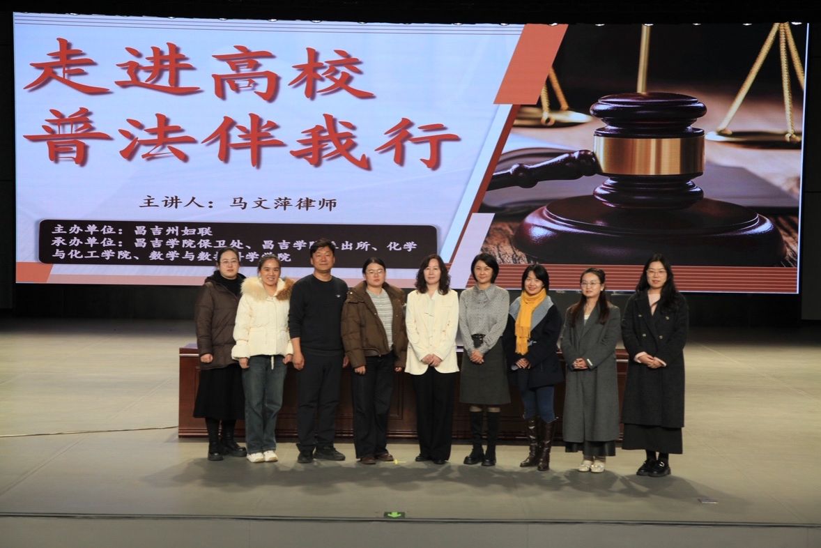 为提升高校师生法治意识与自我保护能力,明晰法律边界、树立健康法治观与婚恋观念,2026年3月11日,“走进高校 普法伴我行”普法讲座在昌吉学院图书馆学术报告厅顺利举办。本次活动由昌吉州妇联主办,昌吉学院保卫处、昌吉学院派出所、化学与化工学院、数学与数据科学学院联合承办。昌吉州妇联权益部工作负责人马园璟、新疆同创律师事务所马文萍律师,昌吉学院保卫处副处长张文涛及化学与化工学院、数学与数据科学学院辅导员出席活动。