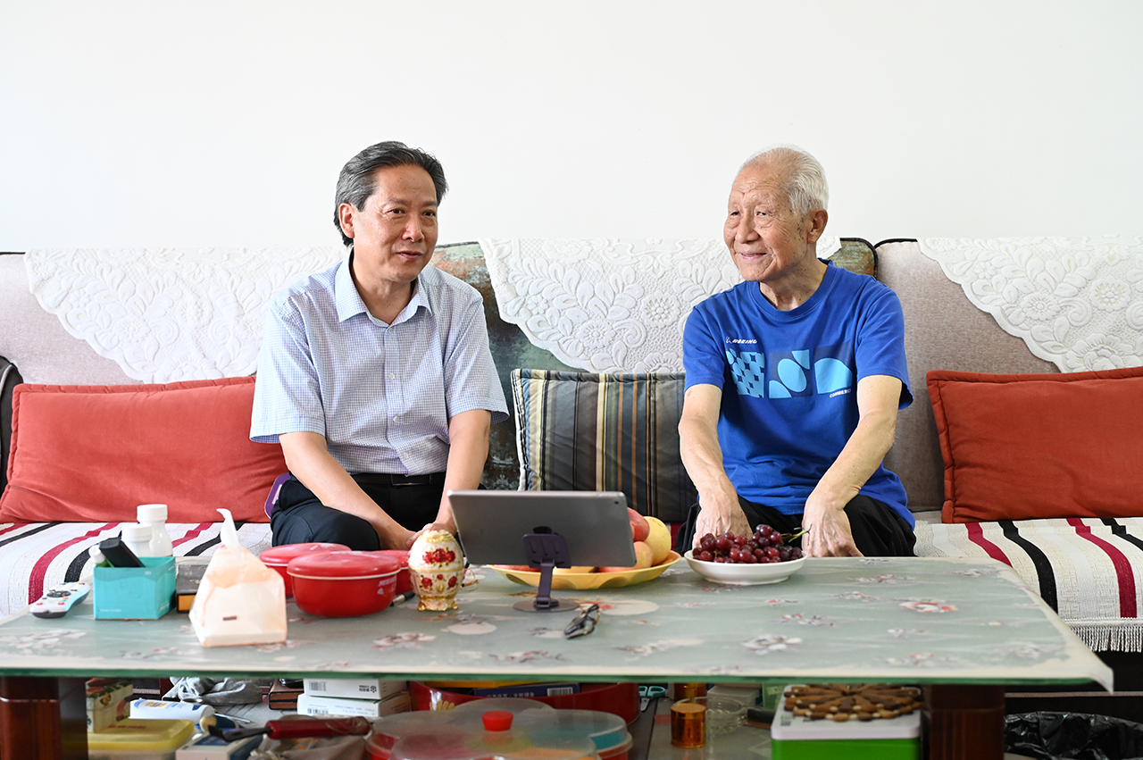 季荣来到原昌吉学院工会副主席闵玉斌和原昌吉学院体育系主任胡昌吉教师家中看望慰问。季荣与老教师亲切交谈,详细介绍了昌吉学院近年来在教育教学、科学研究、社会服务等方面取得显著成效的情况,认真听取他们对学校发展的意见建议,感谢他们为昌吉学院建设发展付出与贡献。