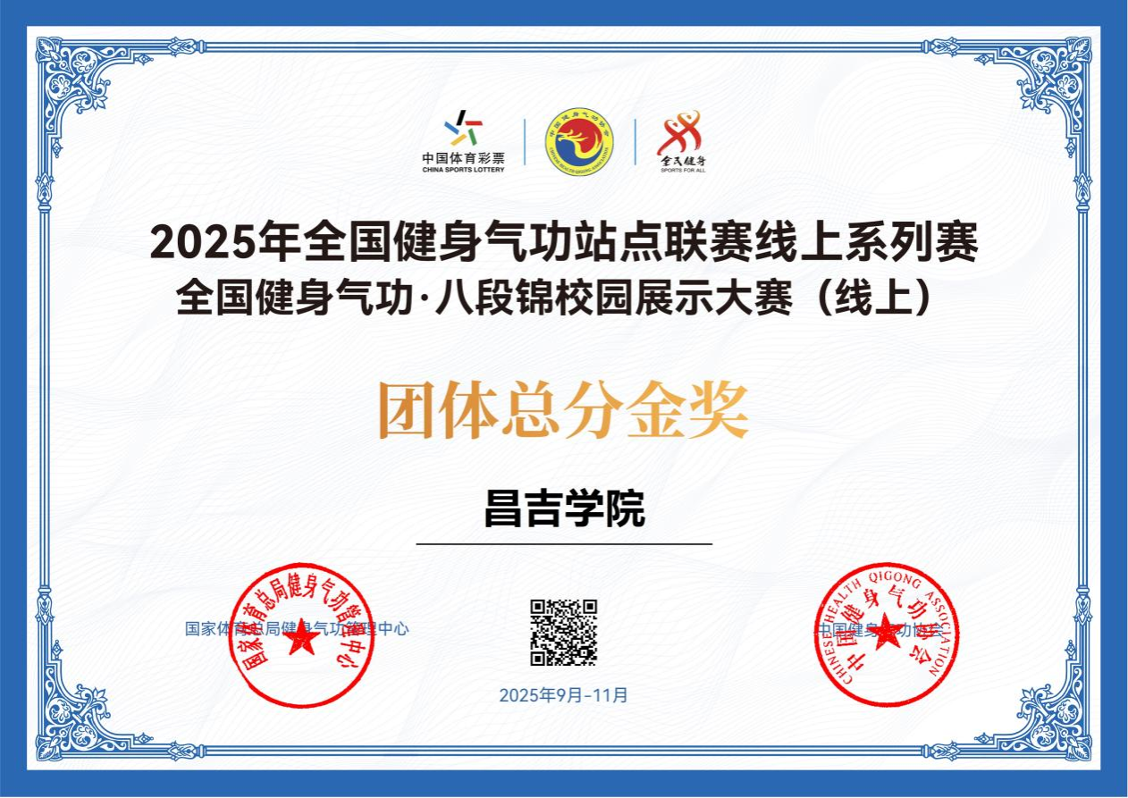 本次赛事以“弘扬传统文化,赋能青少年健康”为主题,由国家体育总局健身气功管理中心、中国健身气功协会主办,采取线上提交视频方式参赛。共设小学组、中学组、高校组等多个组别,共吸引全国712所学校的3533支队伍踊跃参赛。昌吉学院由体育与健康学院、校团委共同组织,选派68支代表队近400名师生参与高校社团组与教工个人组各项目,充分展现了昌吉学院在弘扬中华传统体育文化方面的扎实成效。此次获奖是我校体育教学创新成效的综合体现,也是学校持续推进教学改革创新、推进学校内涵式高质量发展的集中展示。