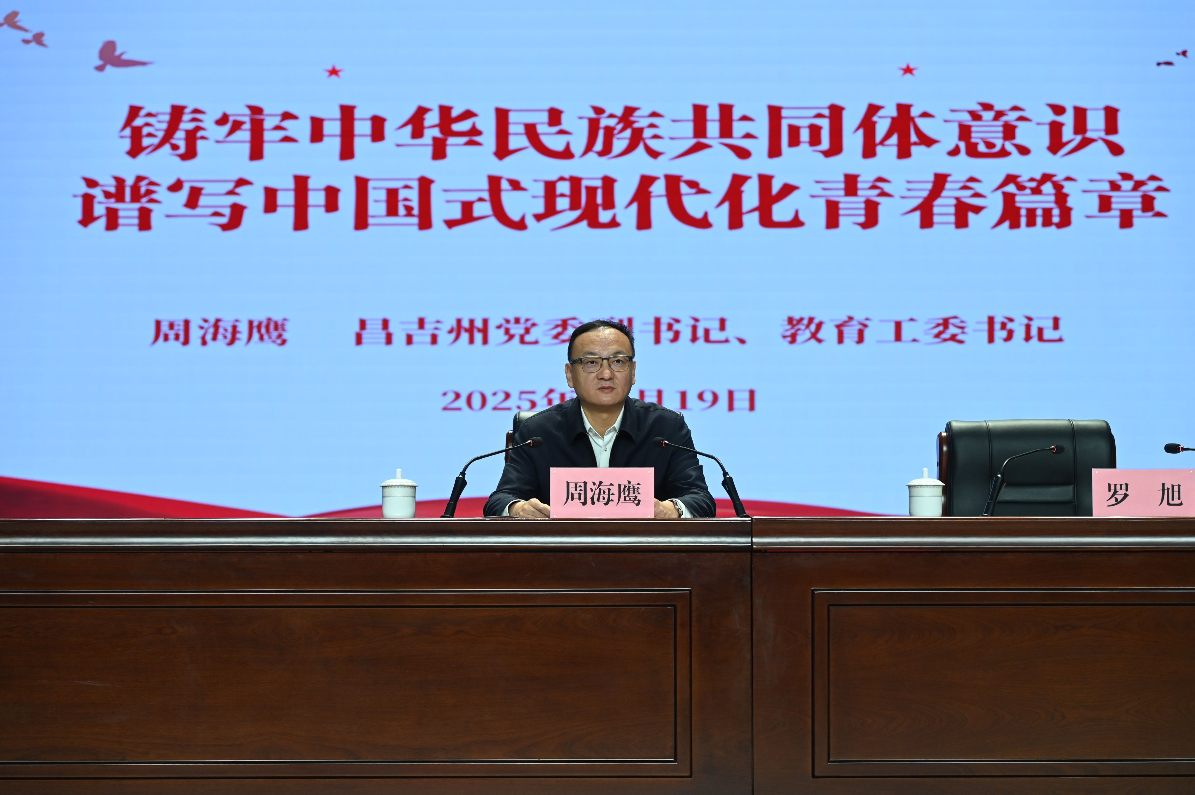 周海鹰以“铸牢中华民族共同体意识,谱写中国式现代化青春篇章”为主题,从历史逻辑、现实成就、未来使命三个维度深入阐释了铸牢中华民族共同体意识的核心要义。他指出,我们生逢其时,亲眼见证了一个正深刻影响世界的中国。我们比历史上任何时期都更接近,也更有能力实现中华民族伟大复兴的中国梦。要深刻地认识到,这份底气与信心源于中国共产党的领导和社会主义制度的保障,源于中华民族内在的强大凝聚力。