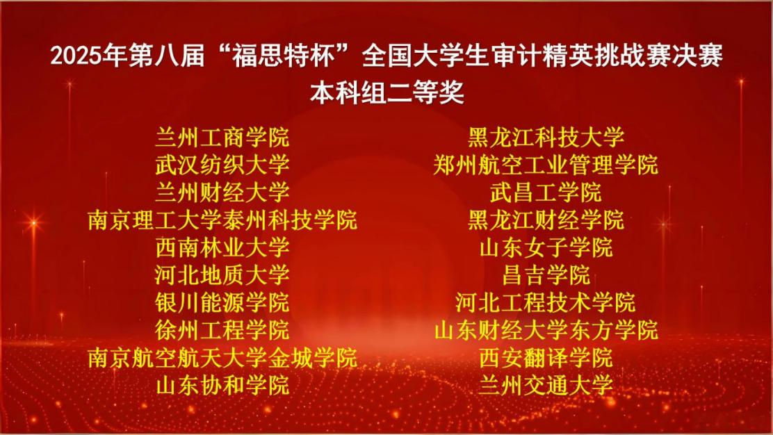 “福思特杯”全国大学生审计精英挑战赛由中国审计学会审计教育分会主办,教育部审计学课程群虚拟教研室、南京审计大学国家审计学院承办,是目前国内规模最大、赛道最全、参赛选手最多、规格最高的审计技能赛事,已入选中国高等教育学会发布的《2023全国普通高校大学生竞赛分析报告》观察目录。大赛聚焦审计专业核心能力,全面考查参赛选手在审计案例分析、财务报表审计、审计信息化操作等核心领域的专业素养与实践能力。此次获奖是昌吉学院教育教学创新成效的综合体现,也是学校持续推进教学改革创新、推进学校内涵式高质量发展的集中展示。