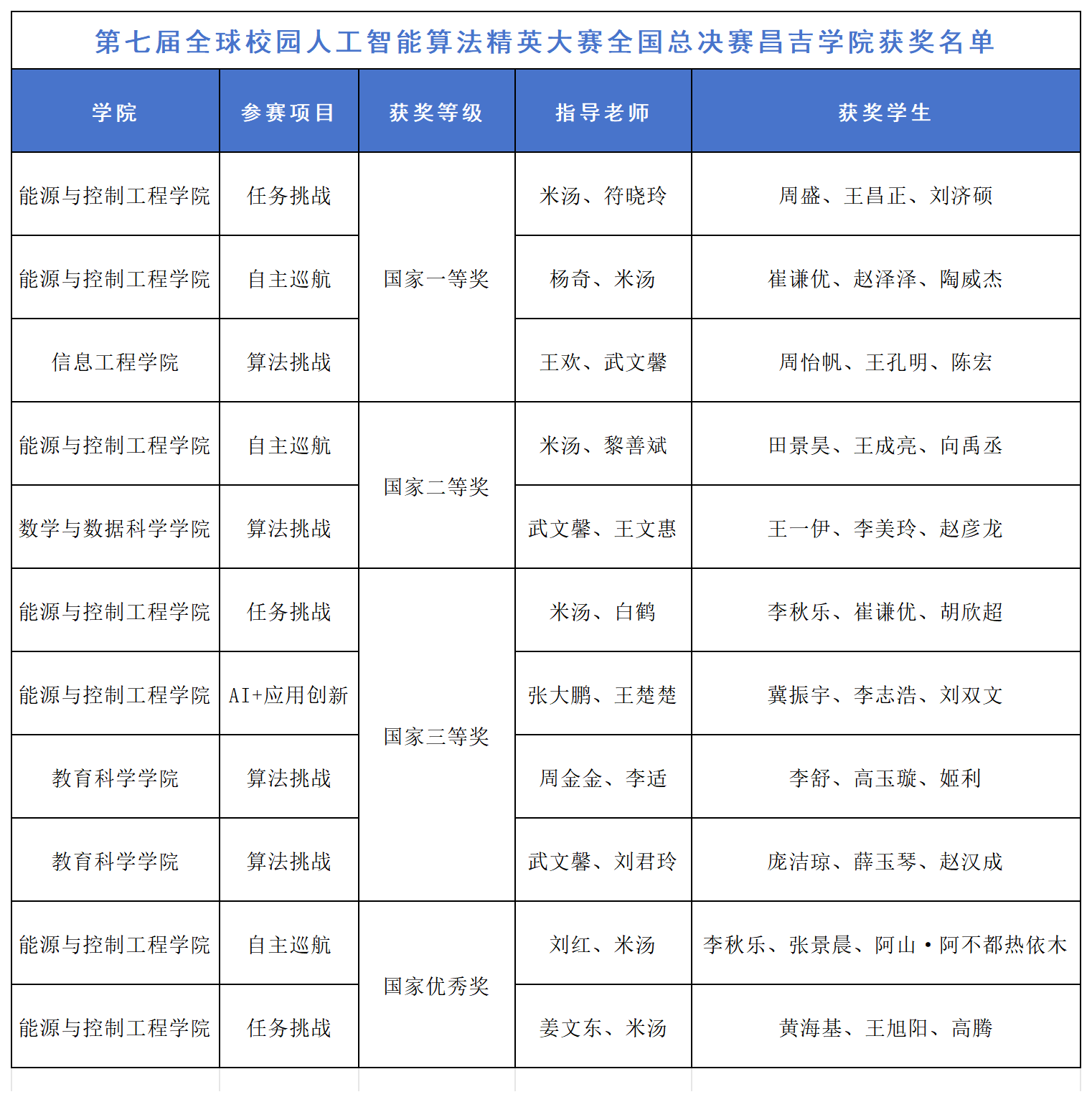 近日,第七届全球校园人工智能算法精英大赛全国总决赛圆满落幕。昌吉学院学子荣获一等奖3项、二等奖2项、三等奖4项、优秀奖2项。