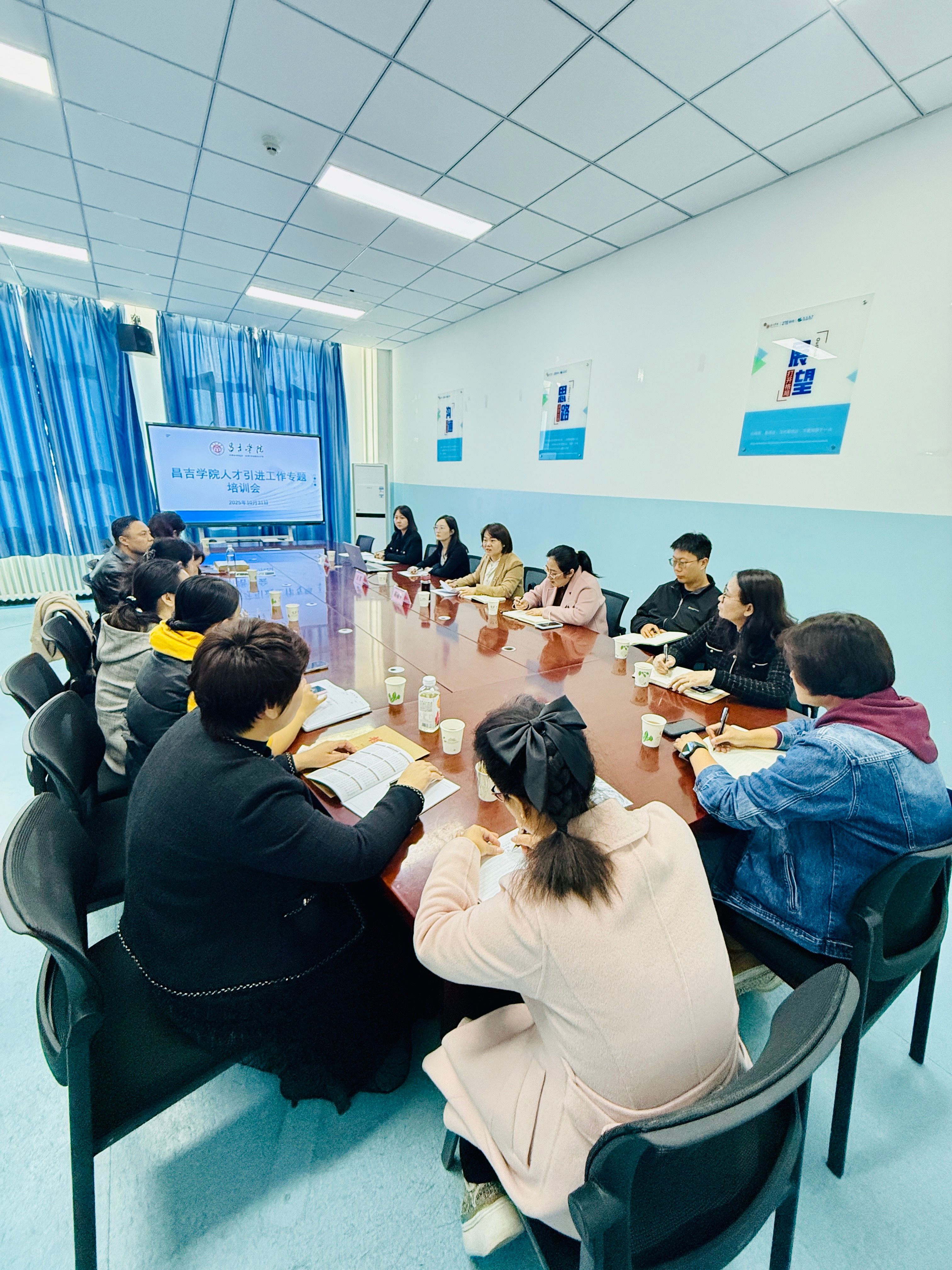 为深入贯彻落实学校“人才强校”战略,全面提升引才工作队伍的专业素养与协同攻坚能力,推动“精准引才、规范引才、高效引才”的核心目标落地见效。学校于10月31日在笃学楼3206会议室组织召开人才引进工作专题培训会。本次培训面向各二级学院引才专干,旨在通过政策解读、经验分享与实战答疑相结合的方式,为学校高质量人才队伍建设注入专业动能。
