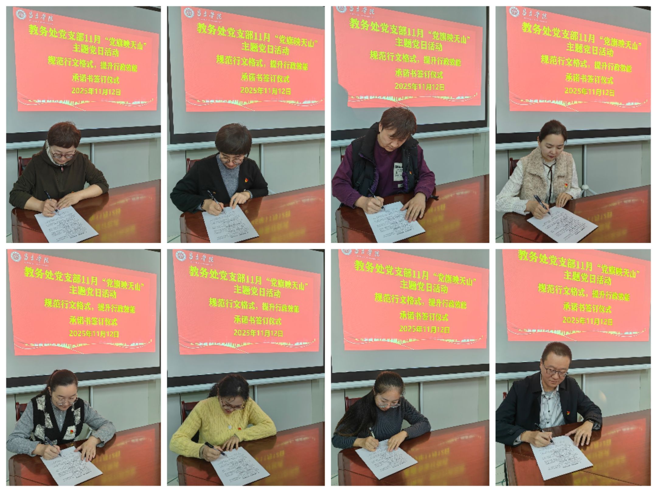 活动最后,教务处全体党员、干部共同签订《教务处文字材料撰写质量承诺书》。孙毅对本次主题党日活动进行了总结,并对下一步工作提出了明确要求。一是要持续学习,常抓不懈。将公文写作规范内化于心、外化于行,形成自觉行动和良好习惯。二是要学以致用,推动工作。将学习成果切实应用到日常教育教学管理服务的每一份公文、每一份材料的规范表达,做到格式标准、内容精确、程序合规。