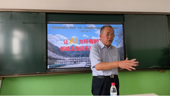 此次捐赠活动不仅为特殊儿童带来了先进的编程学习工具,更通过系列微讲座传递了AI教育的重要意义。9月11日下午,昌吉学院继续教育与培训学院直属党支部副书记刘斌与北京电化教育馆原馆长潘克明共同出席了和田县特殊教育学校的捐赠仪式,和田县教育局局长袁丹华、师训科科长杨婷婷及和田县特殊教育学校部分领导老师参与捐赠活动。