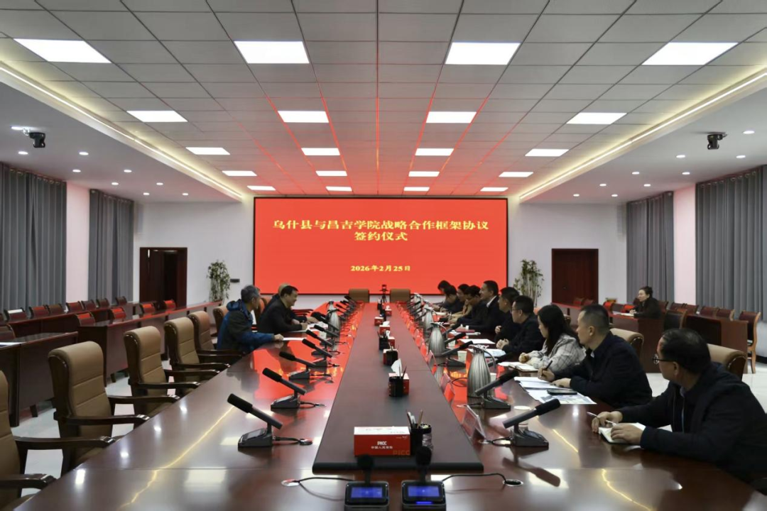 2月25日,昌吉学院与乌什县战略合作框架协议签约仪式在阿克苏地区乌什县人民政府隆重举行。此次签约标志着双方在深化校地资源整合、响应国家教育帮扶政策上迈出关键一步,将为乌什县“十五五”开局之年的高质量发展注入强劲智力动能。昌吉学院党委常委、副校长刘建明,继续教育与培训学院副院长彭金城,客座教授赵新泉;乌什县委副书记、县长格帕尔·阿布都卡德尔,县委常委、组织部部长李科一,县政府党组成员、副县长阿迪拉·艾合买提等相关部门负责同志出席签约仪式。仪式由乌什县委副书记、政府党组副书记、常务副县长马建军主持。