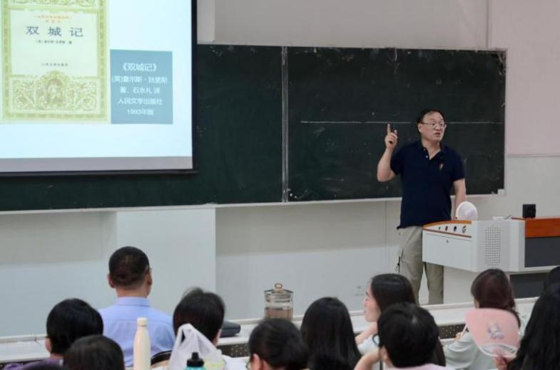 傅守祥教授重点讲解了《双城记》中故事发生的18世纪法国大革命前后法国和英国的社会状况,与19世纪50年代英国社会现实之间的映照,并指出狄更斯在《双城记》以借古喻今的方式反映了欧洲特定时代尖锐的阶级对立和激烈的阶级斗争。傅守祥教授梳理分析了小说中的人物图谱,重点讲解作者如何通过气氛紧张的社会历史背景,巧妙的悬念设置,成功地戏剧化个人的困境与人格的冲突,同时,对作者运用象征和对比手法、仁爱精神和人文思想作了分析,剖析《双城记》的经典性和现实价值,聆听报告的师生受益匪浅。
