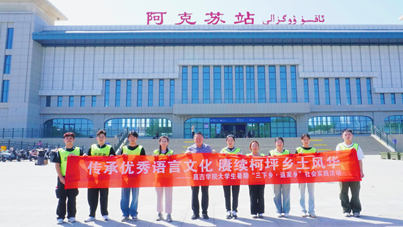昌吉学院中国语言文学学院团委积极响应共青团新疆维吾尔自治区委员会与新疆维吾尔自治区学生联合会面向全国高校学生共同组织的“铸牢中华民族共同体意识——‘石榴籽祖国行’”大学生暑期“三下乡·返家乡”社会实践活动,我院青年学生在投身基层建设、服务家乡发展中坚定理想信念、自觉增长本领、积极为中国式现代化挺膺担当。2025年7月17日,昌吉学院中国语言文学学院青年志愿服务队一行11人奔赴柯坪县开展为期7天的暑期“三下乡·返家乡”社会实践活动,中国语言文学学院党委副书记、纪委书记贾尔肯·安沙尔领队并担任指导教师,辅导员张振宇、公共语文教研室教师刘敏共同担任指导教师。7月18日上午青年志愿服务队抵达阿克苏,当天下午入驻柯坪县阿恰勒镇库木鲁克村按计划开展“三下乡·返家乡”社会实践活动具体工作。