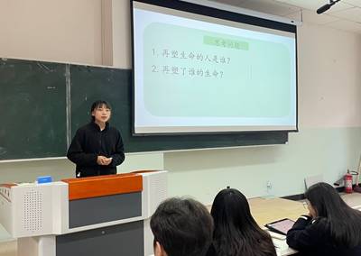 史婉婷同学讲授的篇目是刘义庆的《陈太丘与友期行》,选手围绕“元方是否失礼”这一话题对课文进行分析,课堂语言充满活力,将诚信、礼节与原则的讨论引向深入,成功实现了中华优秀传统美德与现代价值观的融合。