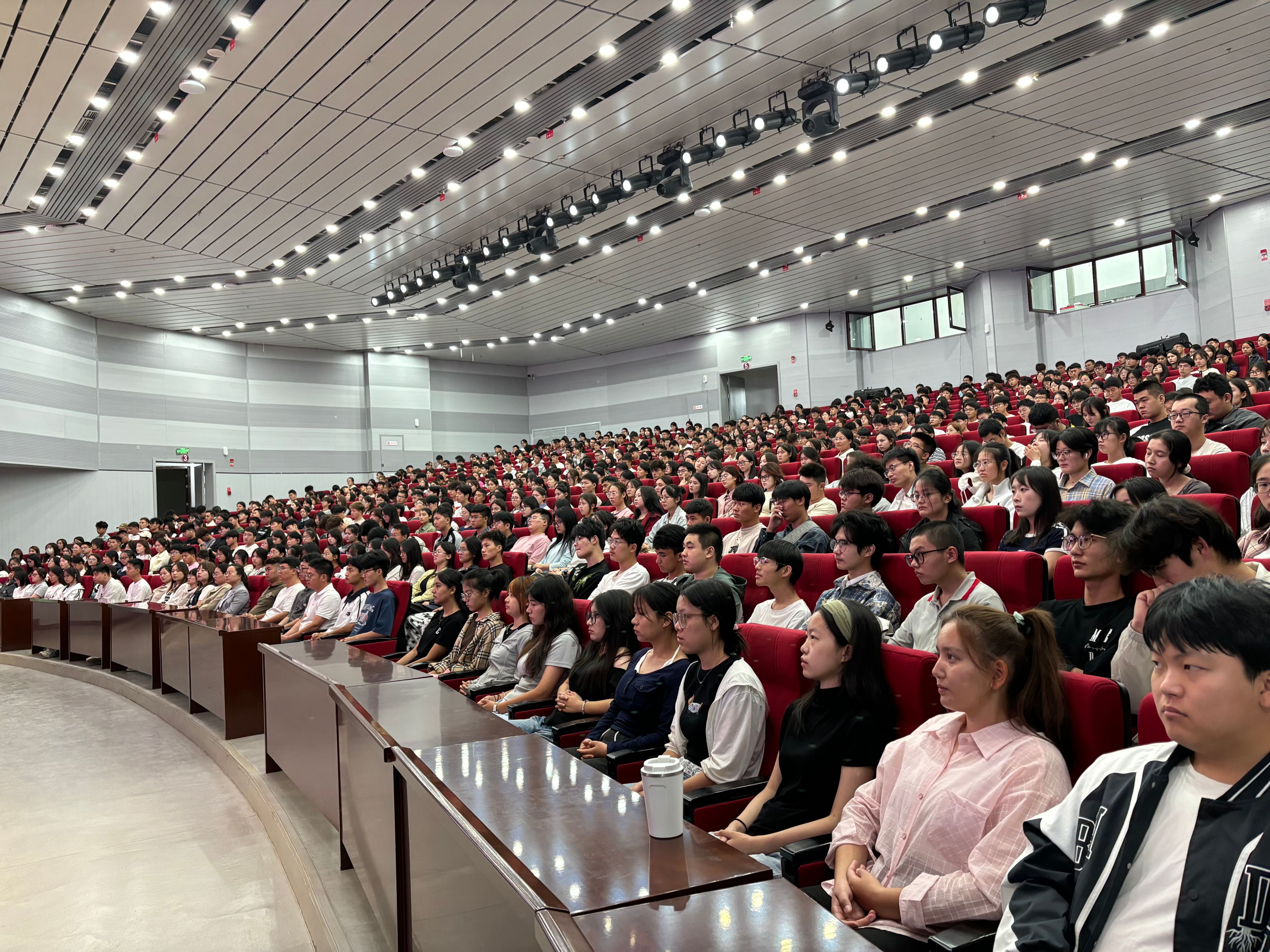 刘彦平书记以“铭记历史,砥砺前行”为主题为新生讲授“开学第一课”。他结合反法西斯战争胜利80周年,带着新生回顾1945年中国抗战胜利的历史意义,阐述正义必胜的历史规律。介绍我国从“两弹一星”到航母、北斗系统的军事现代化成就,并列举杨靖宇、邓稼先等榜样,号召大家传承爱国主义精神。他勉励新生将爱国情怀转化为学习动力与实践行动,以奋斗助力中华民族伟大复兴。