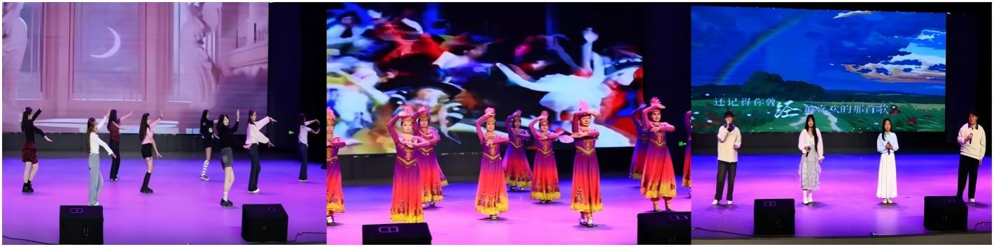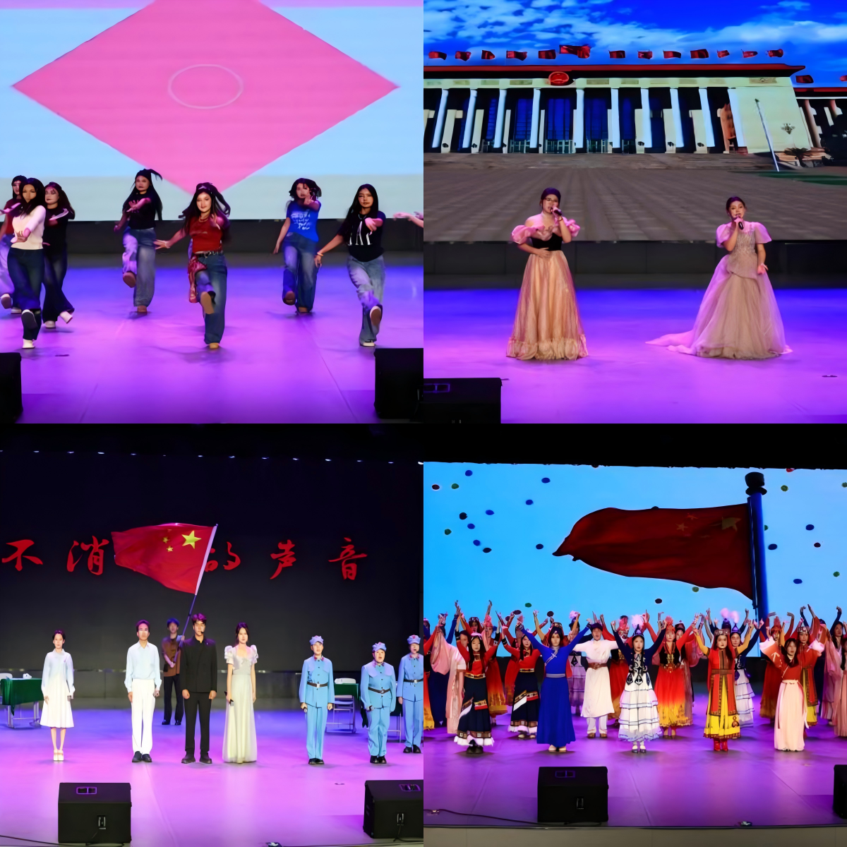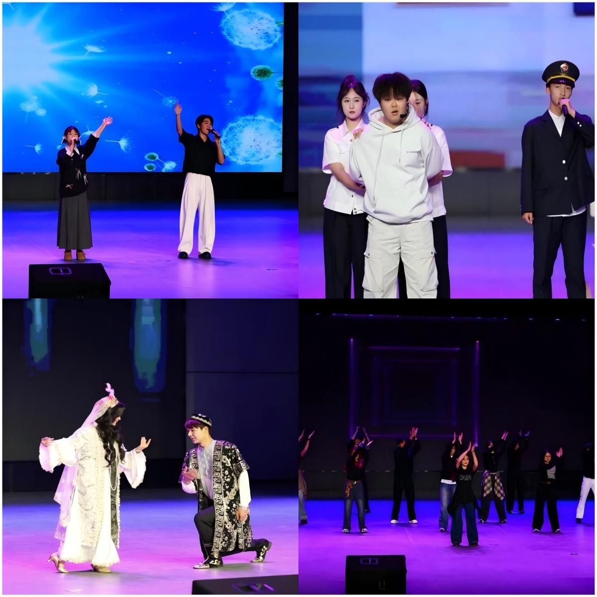 舞蹈《石榴花开》以灵动的舞姿和飞扬的裙摆,展现出热情洋溢的舞台感染力。歌曲《彩虹》旋律柔和、演唱真挚,传递出同窗之间的温暖情谊。舞蹈《Forever Young》节奏鲜明、动作整齐,呈现出青春昂扬的活力。话剧《天山脚下的时代答卷》以庄重而动人的舞台叙事,生动展现了新疆七十载的发展历程,讲述了一代代各族儿女在这片热土上同心奋斗、共建家园的团结故事,更映照出中华民族一家亲、携手迈向伟大复兴的时代风景。