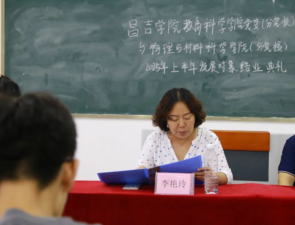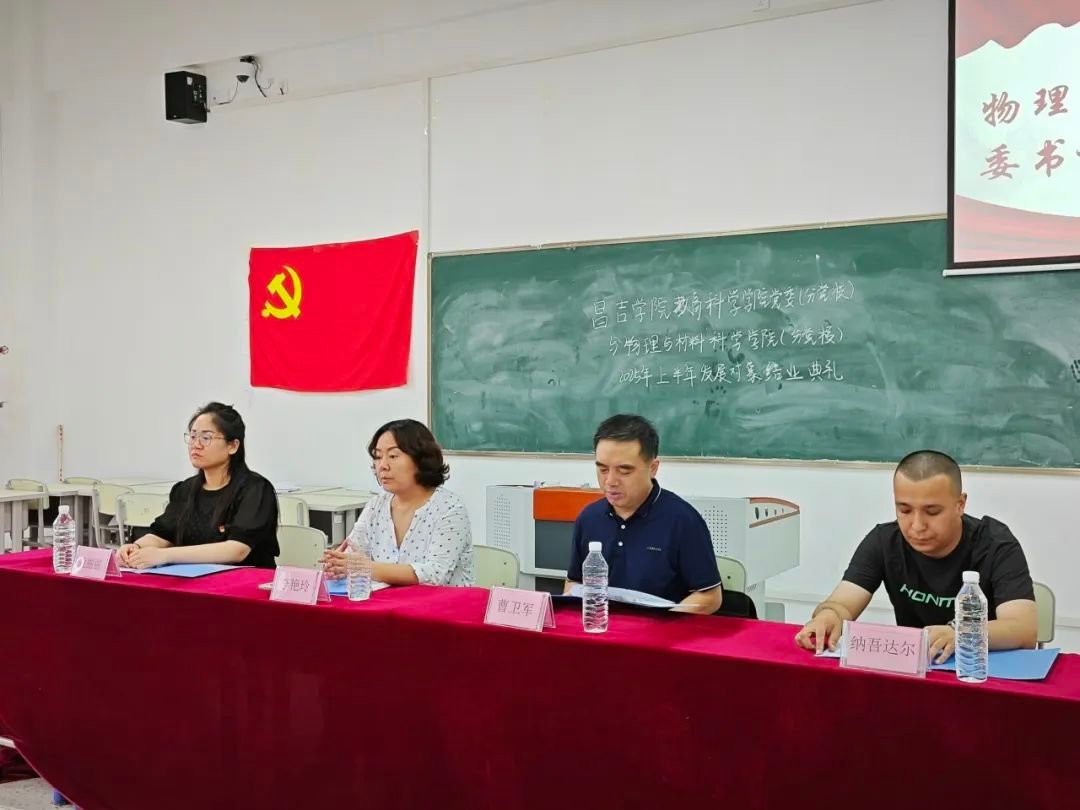 为全面贯彻落实新时代党的建设总要求,聚焦深入学习贯彻习近平新时代中国特色社会主义思想,切实提高党员发展对象思想觉悟和政治素养。6月23日下午,昌吉学院物理与材料科学学院党委、教育科学学院党委(分党校)联合在7号教学楼7505-1教室举行2025年上半年发展对象培训班结业典礼。