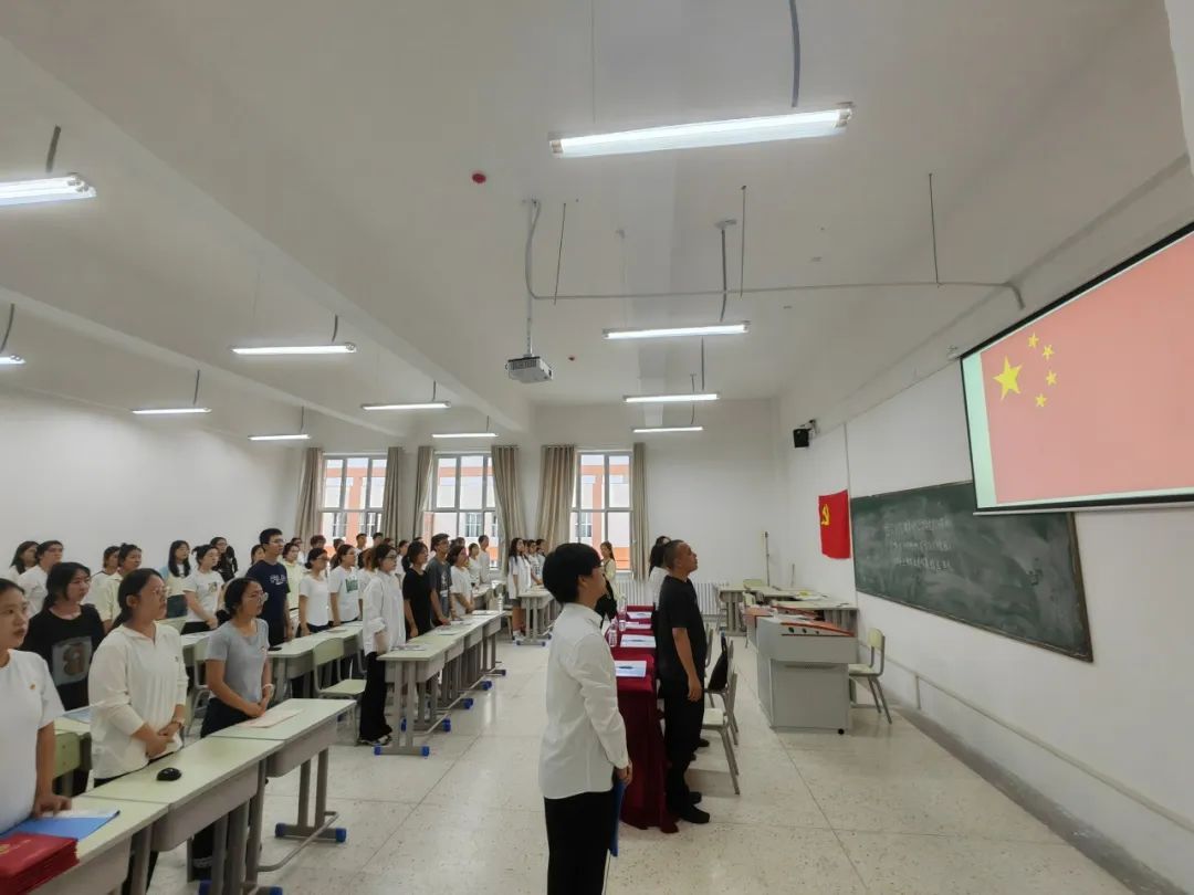 典礼在激昂的国歌声中拉开帷幕。国歌的旋律承载着民族的不屈精神,也提醒着党员发展对象们时刻铭记入党初心。在这庄严的时刻,大家在歌声中凝聚信仰力量,立志以实际行动践行使命担当,严格要求自己,为党和人民的事业拼搏奋斗。