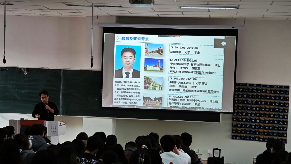 近日,物理与材料科学学院新引进的高层次人才路自修博士,为材料物理及新能源材料与器件专业600余名本科生,作了题为“非线性光学晶体合成及表征”的专题学术报告。本次活动紧密连接学科前沿与本科教学,有效拓展了学生的学术视野,激发了科研兴趣,为其专业成长赋能。