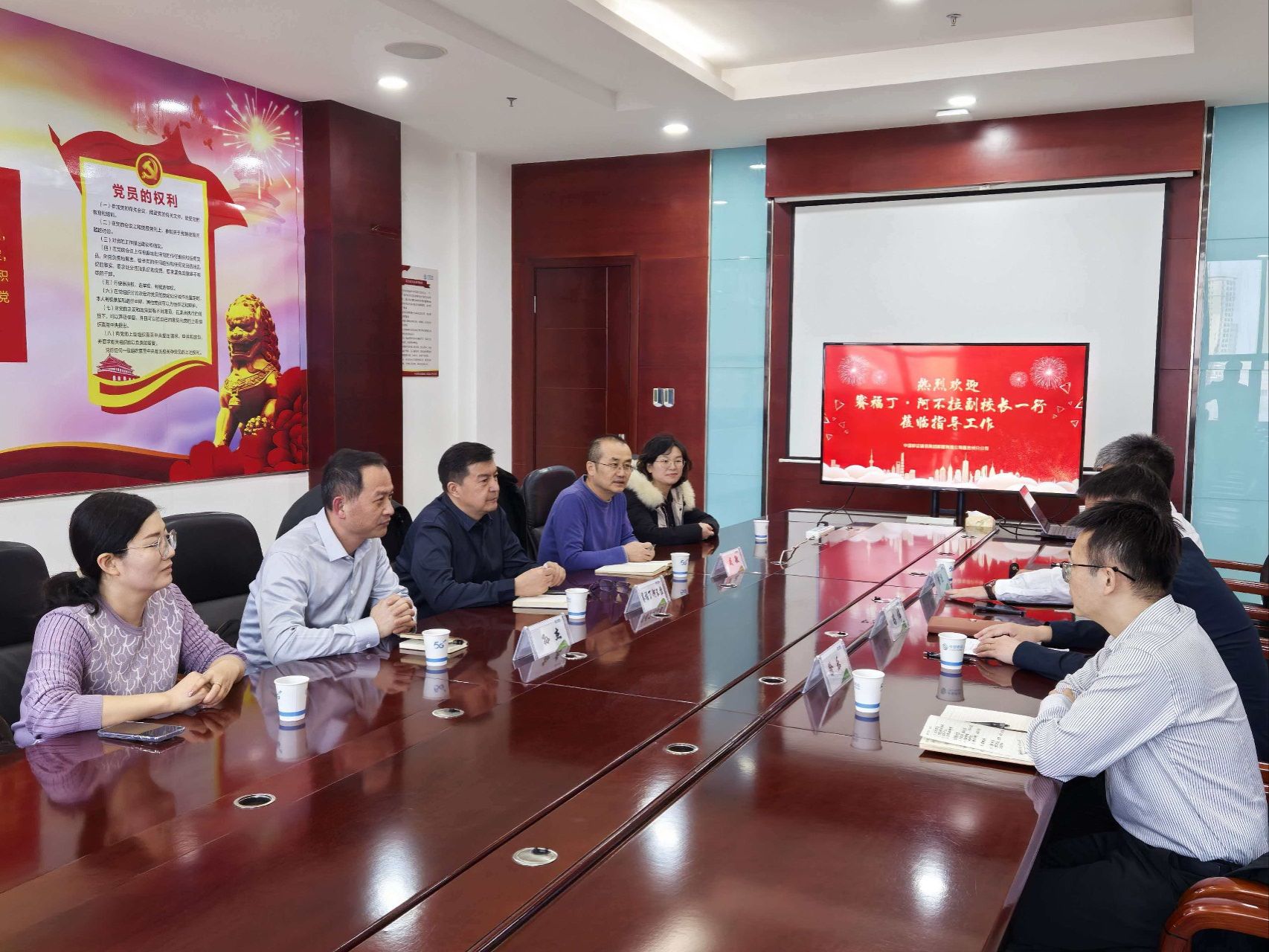 为深入贯彻落实学校“更名大学与建设具有区域特色的新疆一流应用型大学”发展目标,精准对接通信行业人才需求,拓宽毕业生实习就业渠道,深化校企协同育人,2月10日,学校党委常委、副校长赛福丁·阿不拉、信息工程学院党委书记戚敏、信息工程学院党委副书记、院长孙杰一行赴中国移动通信集团新疆有限公司昌吉州分公司开展访企拓岗专项行动。中国移动昌吉州分公司副总冯伟、中国移动昌吉市支公司总经理杨杰等人进行了座谈交流。