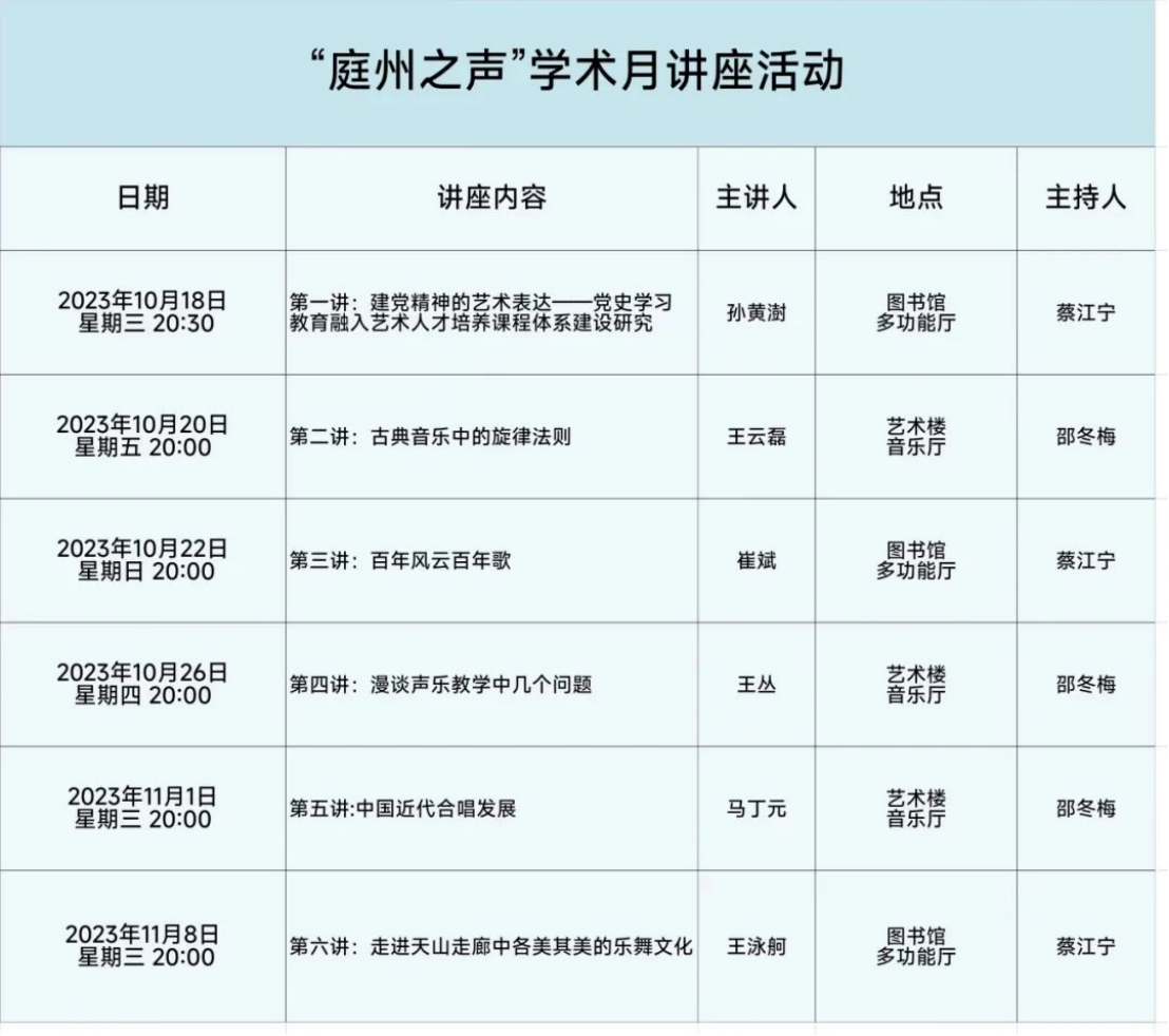 为学习贯彻习近平新时代中国特色社会主义思想,落实习近平总书记关于教育和文艺工作的重要指示精神,推进文化润疆工程落到实处,音乐与舞蹈学院第二课堂以“庭州之声”学术月为主题,通过学术交流讲座的活动载体,将思想铸魂与艺术教育深度融合,推动铸牢中华民族共同意识融入办学育人全过程。