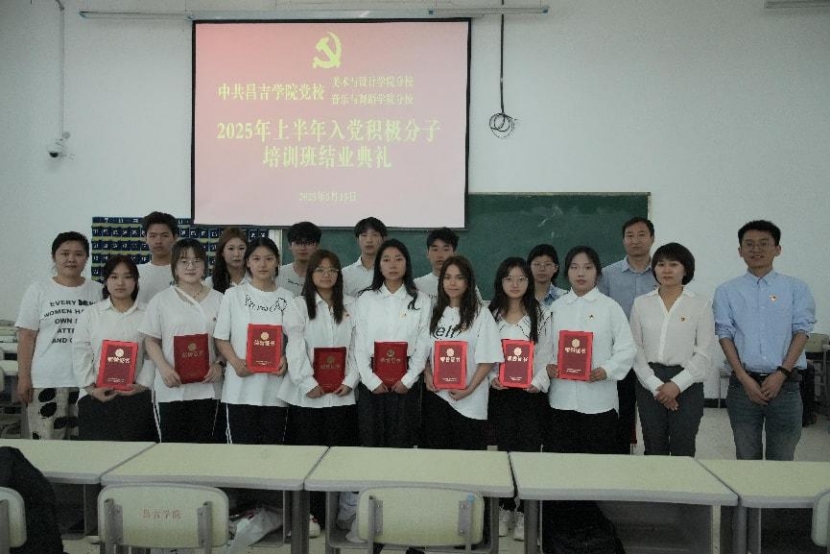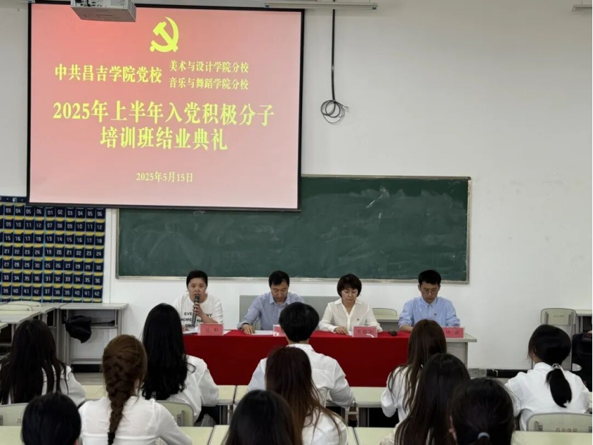 为深入学习贯彻习近平新时代中国特色社会主义思想,切实提高入党积极分子思想觉悟和政治素养,认真做好入党积极分子的教育培养。5月15日下午,音乐与舞蹈学院分党校、美术与设计学院分党校联合在6号教学楼6116举行2025年上半年入党积极分子培训班结业典礼。音乐与舞蹈学院党委副书记、纪委书记李晓娟,美术与设计学院党委副书记、纪委书记黄伟斌,音乐与舞蹈学院学生管理办公室副主任、学生第一党支部书记田博及全体入党积极分子参加本次结业典礼。会议由美术与设计学院学生管理办公室主任、学生第四党支部书记吴娟主持。