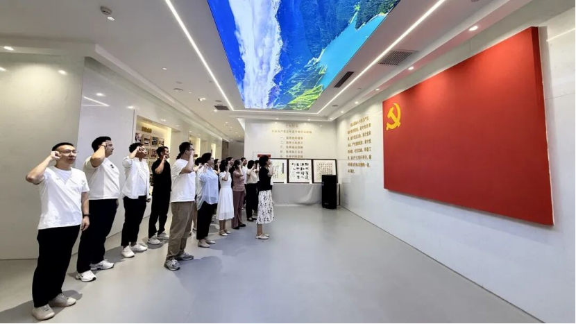 参观结束后,全体党员在鲜红的党旗下整齐列队,学院党委书记蔡江宁领誓,大家高举右拳,庄严宣誓:“我志愿加入中国共产党,拥护党的纲领,遵守党的章程……”铿锵有力的誓言回荡在展厅,既是对入党初心的重温,更是对廉洁从教的郑重承诺。