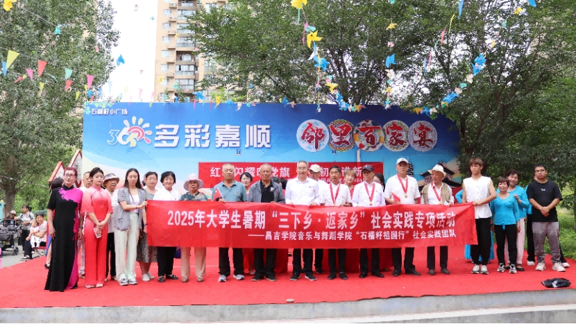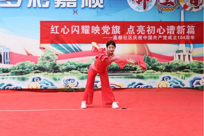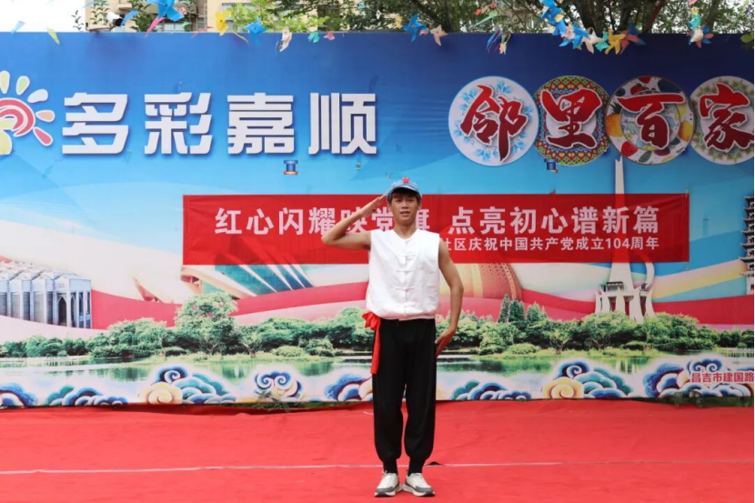 为热烈庆祝中国共产党成立104周年,传承红色基因,凝聚奋进力量,音乐与舞蹈学院实践团以艺术为桥梁、以实践为纽带,于6月27日联合昌吉市嘉顺社区,在社区广场搭建起沉浸式红色文艺舞台,精心准备了融合党史元素与边疆风情的演出节目,为当地居民带来一场兼具思想性、艺术性与民族特色的文化演出。既让社区居民在刚柔并济的舞姿中感受艺术魅力,也让实践团成员在文化实践中深化“艺术为人民”的使命认知。