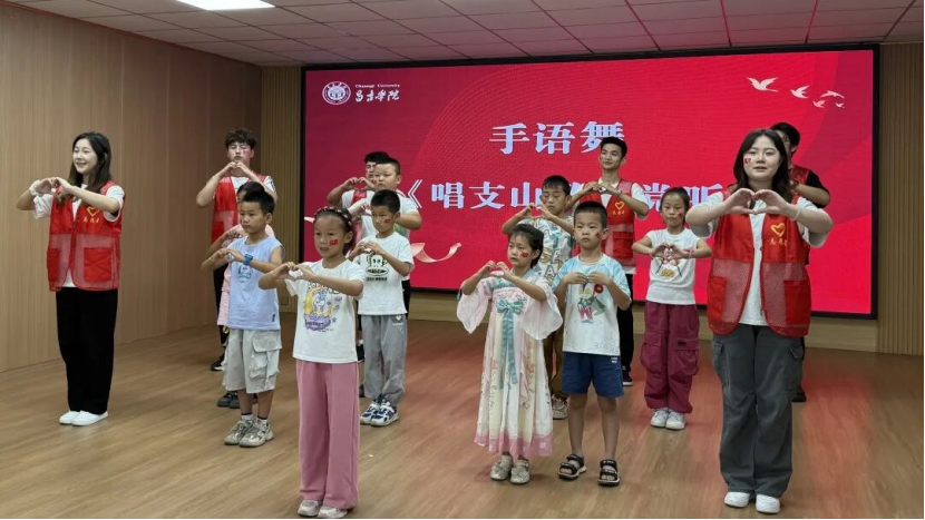 在“红色歌谣,古韵传承”歌唱活动中,志愿者以《唱支山歌给党听》为教材,对歌词进行讲解,并同步教授手势舞,指尖起落间,红色基因随旋律流淌。