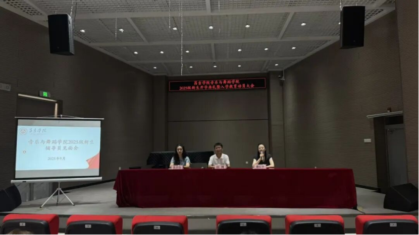 9月9日上午,昌吉学院音乐与舞蹈学院在音乐厅隆重举行2025级新生见面会暨入学教育动员大会。学院党委书记蔡江宁,党委副书记、副院长张莉,党委副书记、纪委书记李晓娟,新生班主任、辅导员、教师代表和2025级全体新生参加大会,大会由学生管理办公室副主任田博主持。