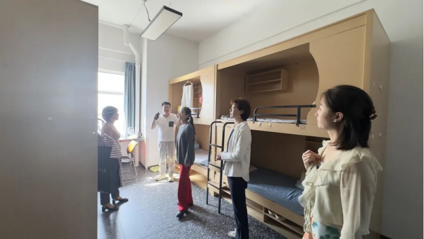 随后,音乐与舞蹈学院领导一行实地察看了学生的实习环境,分别走进教室、宿舍、食堂等场所,了解学生的工作及生活环境。过程中,领导们与实习学生亲切交谈,音乐与舞蹈学院党委副书记、副院长张莉结合专业实习要求,叮嘱学生在实习工作中要注意的要点,鼓励大家珍惜实习机会,主动虚心学习,将课堂所学与实践结合,在实践教学中提升自己的综合能力,拓宽视野,为今后走向工作岗位服务社会打好坚实的基础。党委副书记、纪委书记李晓娟关切询问大家在生活与实习中遇到的困难。走访结束,学院领导与实习单位围绕课程设置优化、实践教学改革、就业合作拓展等方面进行深入探讨,为后期进一步深化合作奠定基础,同时,也向实习单位对学院人才培养工作的支持表示感谢。