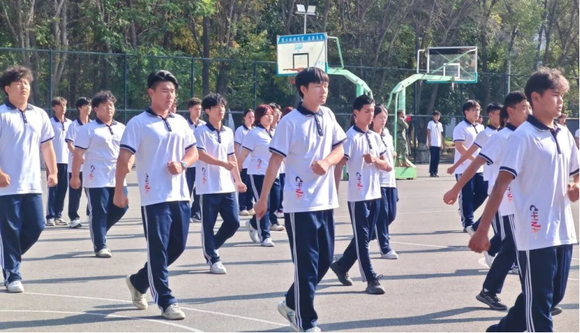 “稍息”、“立正”、“齐步走……”军训的呼号响彻在操场的每个角落,新生坚韧挺拔的身姿是他们坚定精神的缩写,笔直划一手臂、铿锵有力的踢踏,每一个动作都是他们迸发的青春力量。