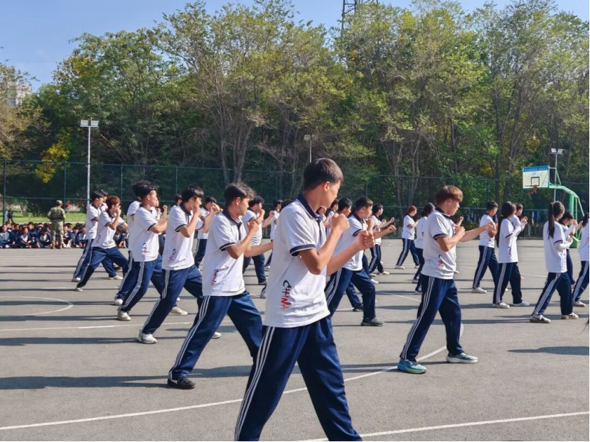 军训场上的新生们握拳、出拳、踢腿格挡刚劲有力,拳风带起衣角,汗水挂满脸庞也不松懈,每一招都透着青春的硬气。此刻的他们,正以拳为媒,把青春的热血与担当,刻进每一次出拳的力量里。