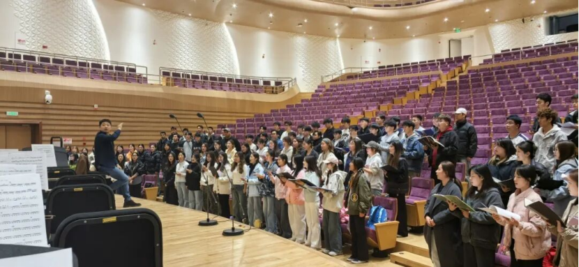 为确保演出质量,学院精心制定排练方案,组建由音乐表演、音乐学专业学生构成的“庭州之声”合唱团。在近一个月的高强度排练中,师生们主动牺牲课余时间,从发声技巧到情感表达逐字逐句打磨细节。著名指挥家许知俊、田光浩先后亲临指导,为合唱团精准把握作品内涵提供专业保障。
