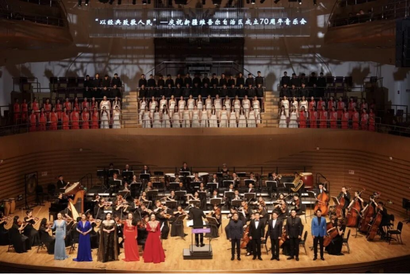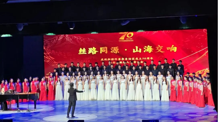 10月7日至8日,“弦歌天山”音乐会在乌鲁木齐音乐厅成功上演。随后在10月11日至12日,“丝路同源·山海交响”音乐会相继在乌鲁木齐音乐厅和昌吉学院图书馆报告厅举行,合唱团通过《黄河颂》《黄水谣》《保卫黄河》《我爱你中国》《我和我的祖国》等作品为观众呈现一场视听艺术盛宴。